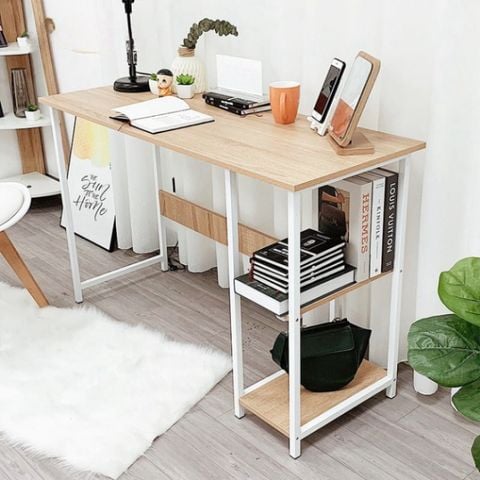 Bàn được trang bị ngăn sách tiện lợi, cho phép người dùng dễ dàng lưu trữ các vật dụng như bút, sổ tay, và các tài liệu cần thiết cũng như các đồ dùng cá nhân. Thiết kế ngăn để đồ tích hợp giúp cho không gian làm việc luôn gọn gàng, không bị lộn xộn bởi các vật dụng nhỏ.