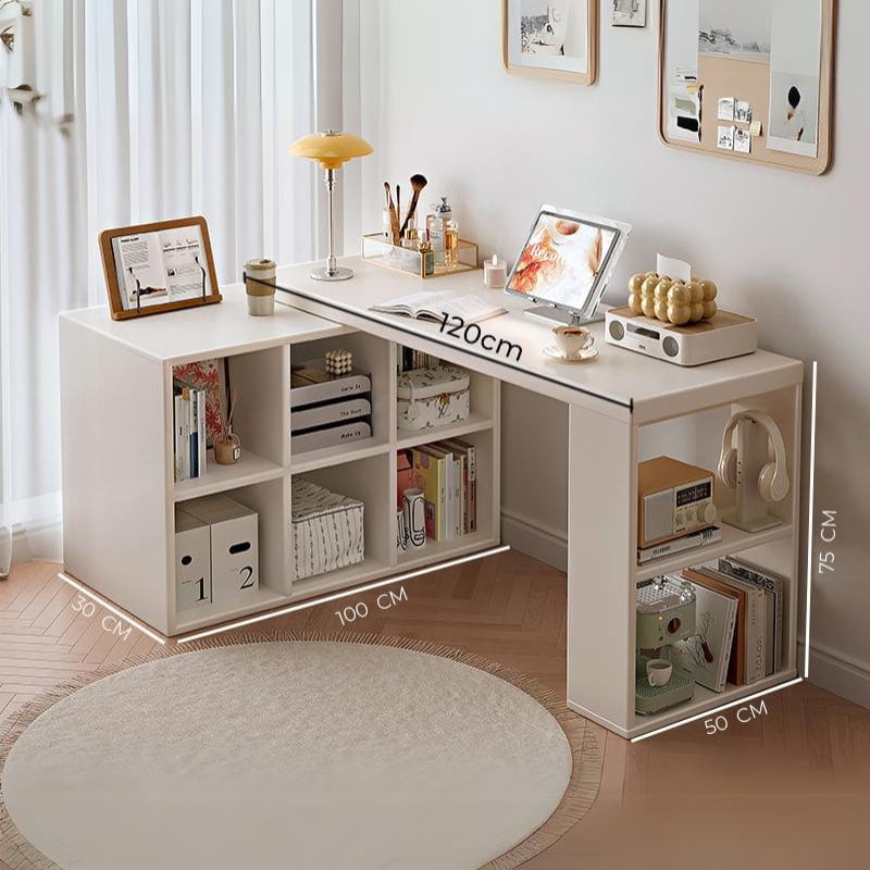 Thiết kế của bàn đi kèm với một tủ để đồ nhỏ gọn nhưng vô cùng tiện lợi. Tủ có nhiều ngăn chứa rộng rãi, giúp bạn dễ dàng sắp xếp sách vở, tài liệu, và các vật dụng cá nhân một cách ngăn nắp. Tủ này cũng có thể dùng làm nơi cất giữ các thiết bị văn phòng như máy in, máy quét hoặc giấy tờ quan trọng.