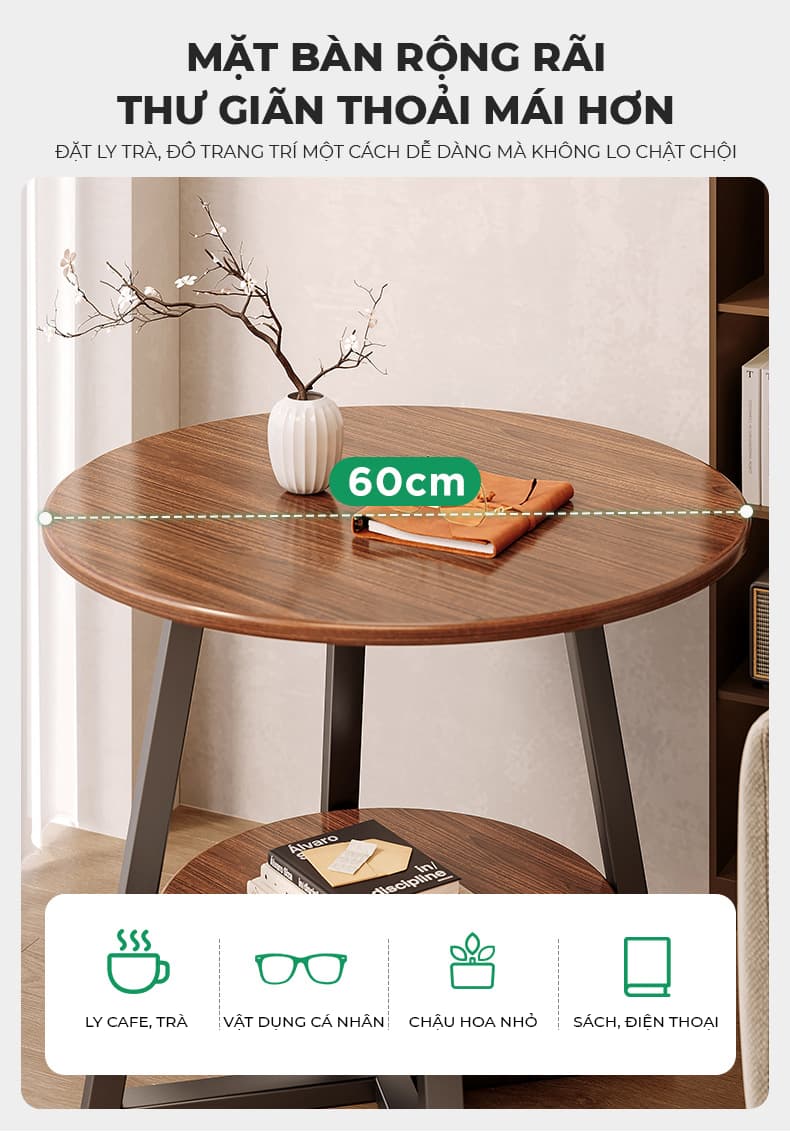 | Chức năng | Làm bàn trà, bàn để cạnh sofa, kệ trang trí nhỏ, bàn đầu giường |