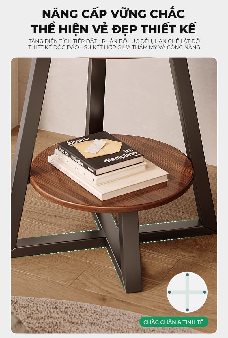 Với cấu trúc 2 tầng, GM206 nhân đôi không gian lưu trữ và trưng bày. Bạn có thể đặt đèn, sách, tách trà ở tầng trên và tạp chí, đồ dùng cá nhân ở tầng dưới, giữ cho khu vực xung quanh sofa luôn gọn gàng. Mặt bàn tròn tạo cảm giác mềm mại, an toàn khi di chuyển xung quanh.