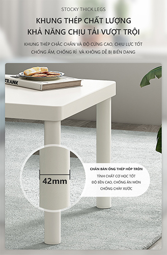 | Thông số khác | Có dán chỉ cạnh Khung chân được sơn tĩnh điện Mặt bàn được phủ lớp Melamine dày dặn |