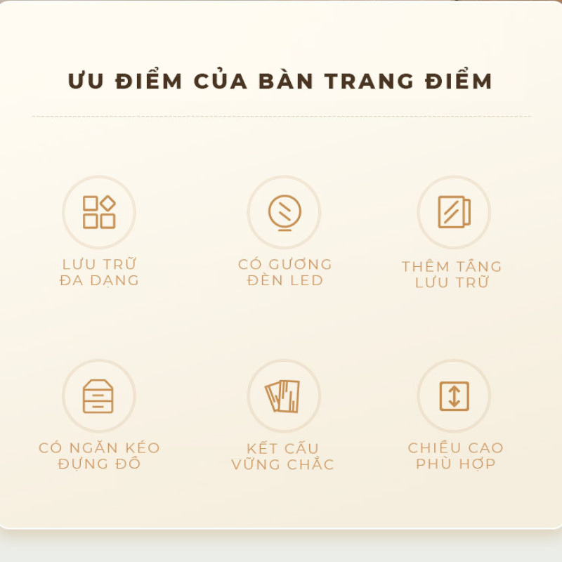 | Chức năng | Bàn trang điểm, bàn phấn, bàn makeup |