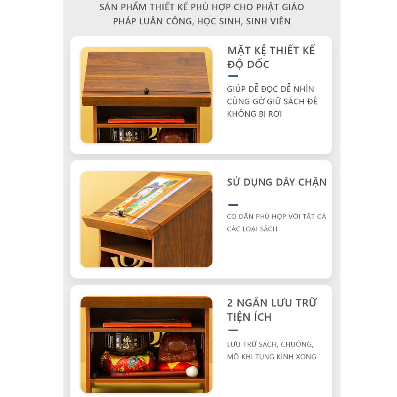 | Chức năng | Kệ bàn gỗ tụng kinh cho phật tử |
