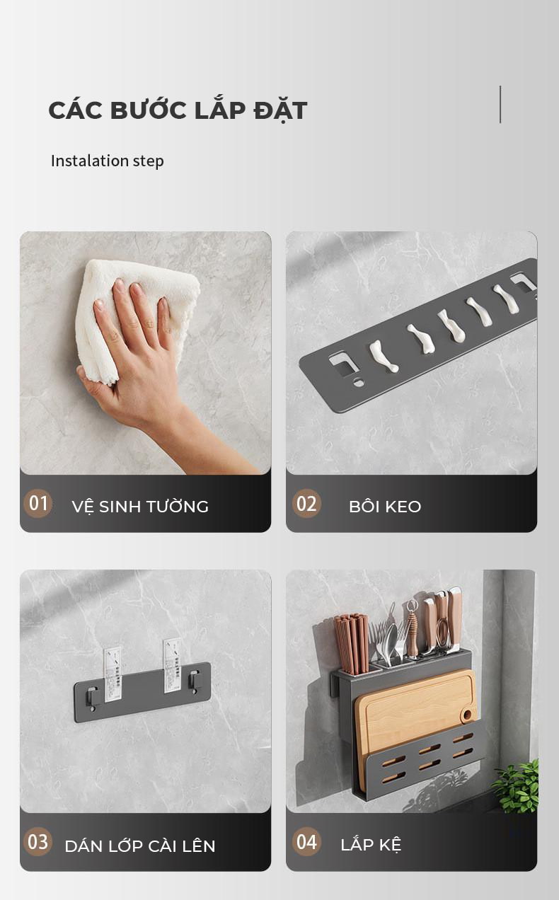| Chức năng | Giá treo để dụng cụ nhà bếp như sao, đũa, thớt... |