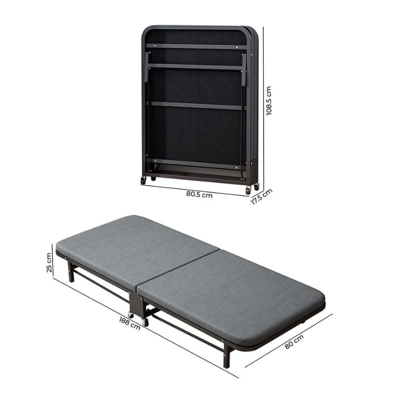 | Kích thước | Mở rộng: Dài 188cm - Rộng 80cm - Cao 25cm Gấp gọn: Dài 80.5cm - Rộng 17.5cm - Cao 108.5cm |