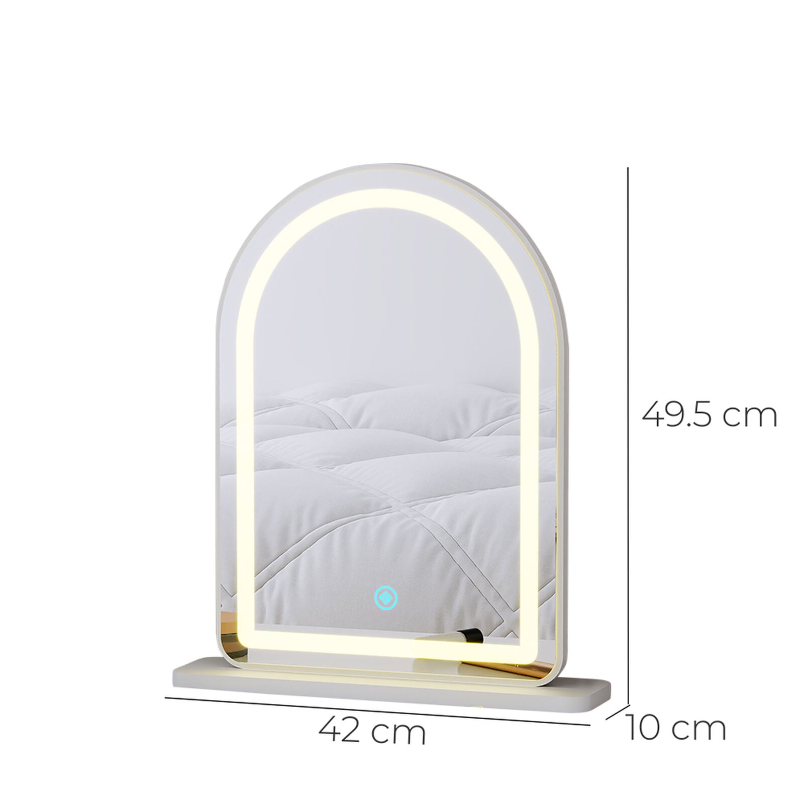 Sở hữu chiếc gương để bàn trắng viền đèn led sang trọng, bạn sẽ luôn tự tin chỉn chu mỗi ngày, đồng thời tô điểm cho không gian sống thêm phần tinh tế và đẳng cấp.