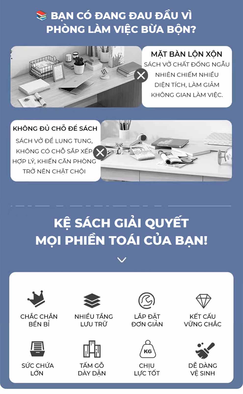 - Nhiều tầng lưu trữ rộng rãi, dễ dàng sắp xếp sách vở, tài liệu, đồ trang trí hay cây xanh.