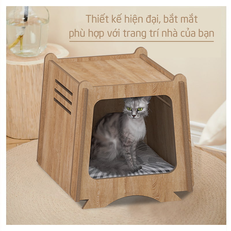 Không chỉ là nơi trú ẩn cho mèo, nhà GP208 còn là một sản phẩm nội thất độc đáo, với kiểu dáng thanh lịch, màu sắc trung tính, dễ dàng hòa hợp với nhiều phong cách trang trí khác nhau, từ hiện đại, tối giản cho đến cổ điển. Điều này giúp ngôi nhà cho mèo không chỉ là một nơi tiện ích mà còn trở thành điểm nhấn trong không gian sống của bạn.