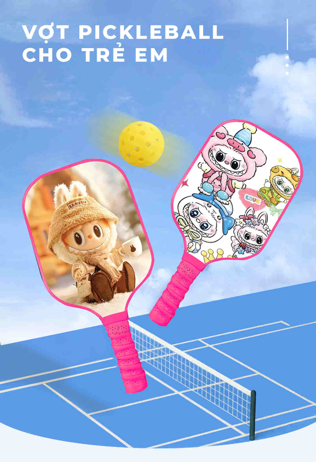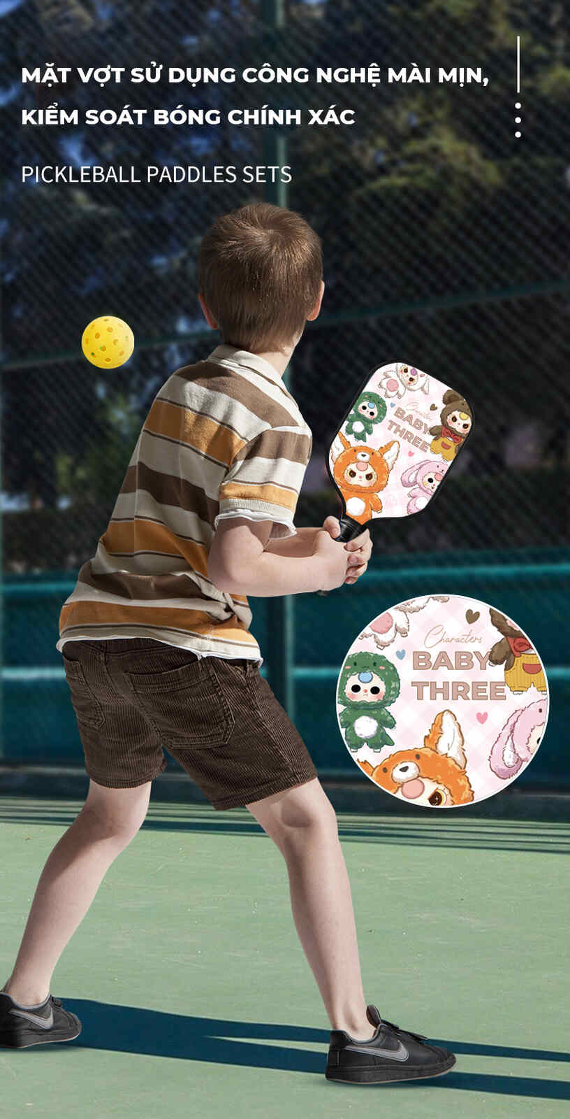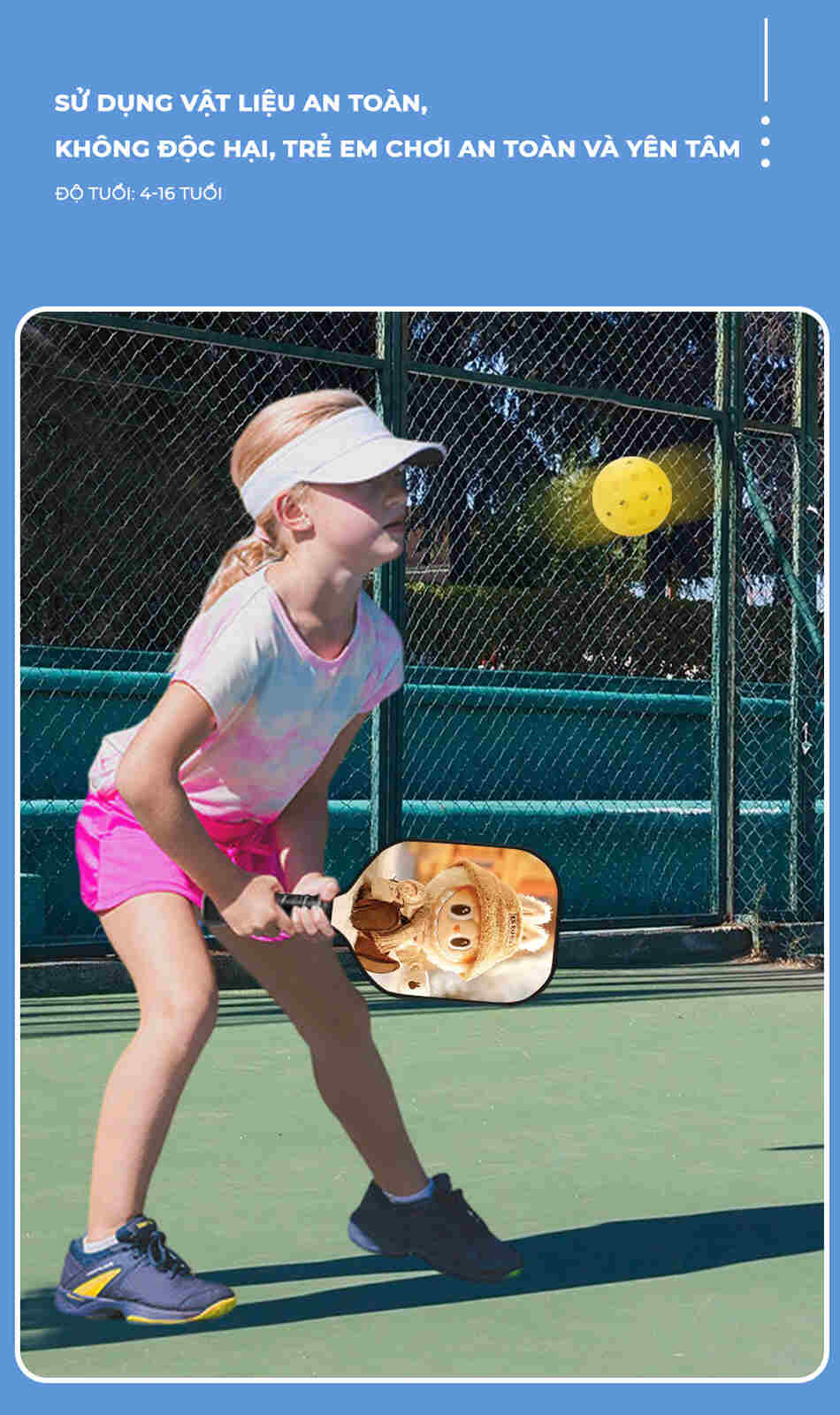 Vợt pickleball hoạt hình PK08 không chỉ là món quà tuyệt vời cho các bé mà còn giúp trẻ phát triển thể chất, tăng cường sự tự tin và tinh thần đồng đội mỗi ngày.